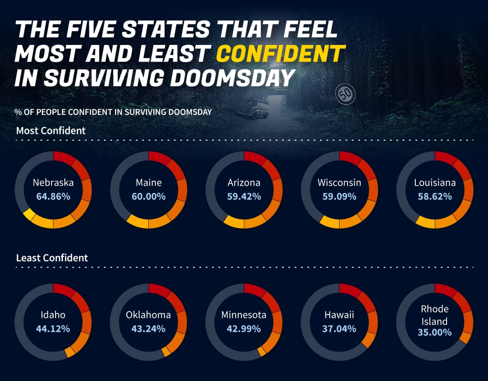Rounding out the top five most confident states in surviving doomsday is Louisiana, where 58.62% of those surveyed are believers in the ability to survive global catastrophe.